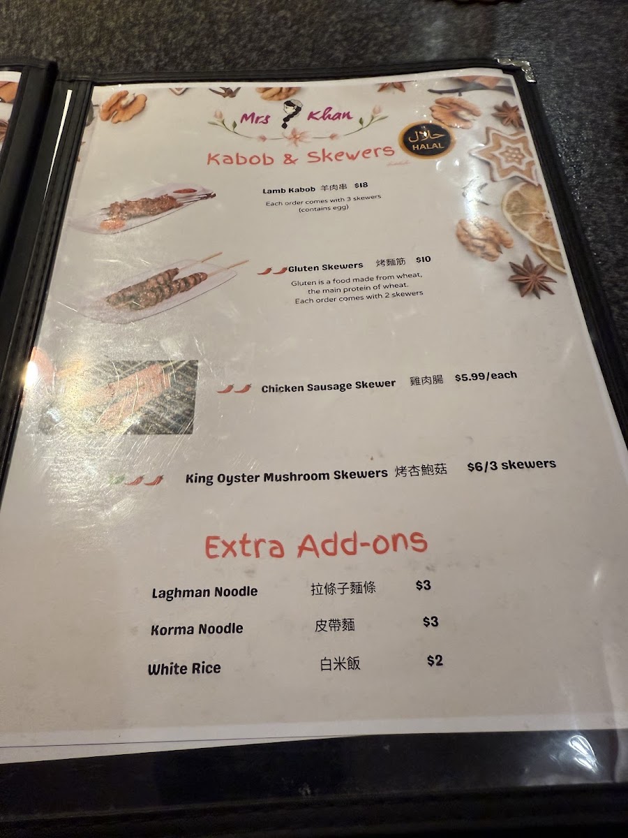 Combo include Hand-pulled Laghman, 3 Skewers of Lamb Kabob plus selection of our Mrs Khan tea.